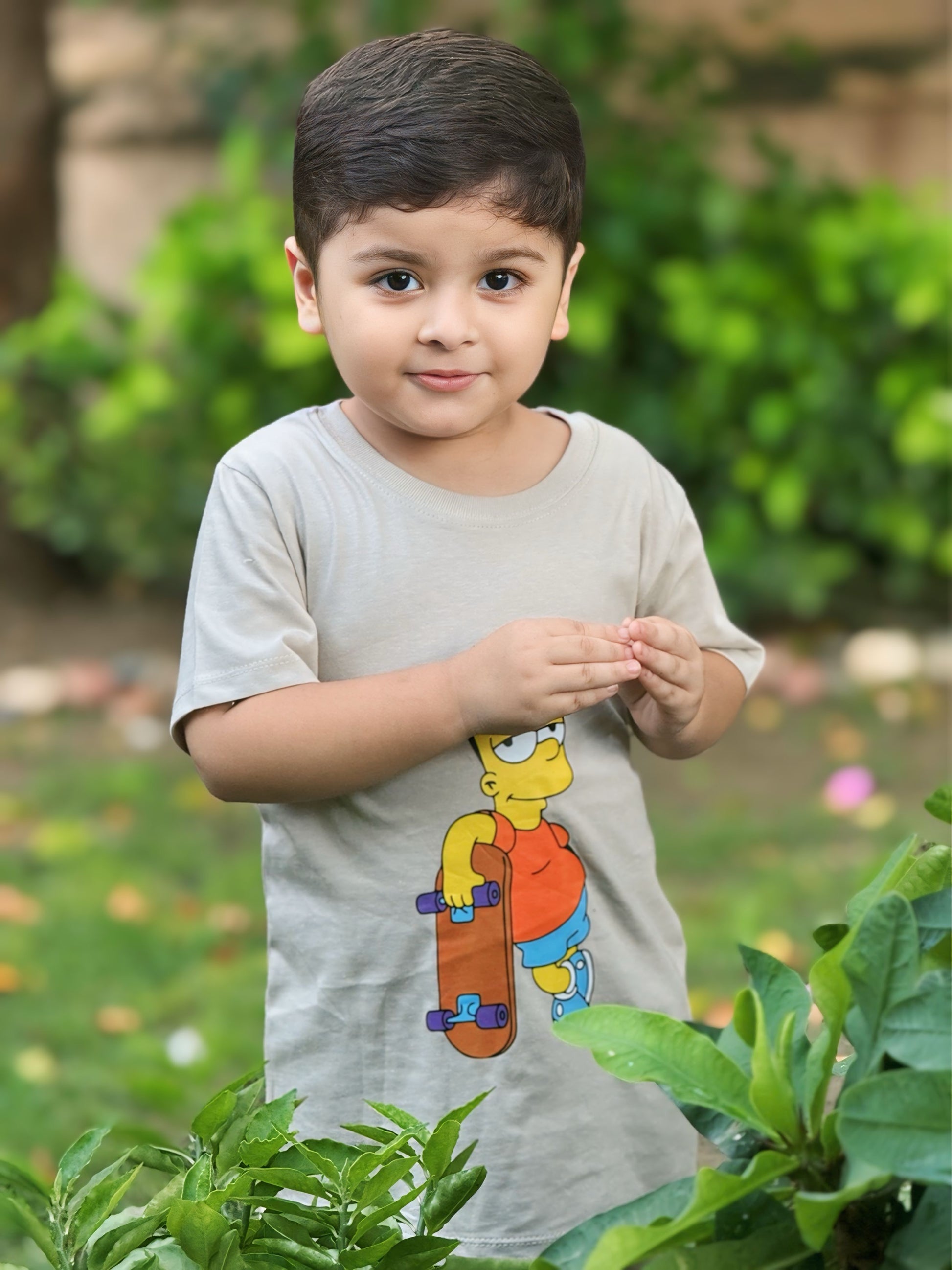 Let your little shine in Bart The Simpson with Skateboard Printed Tee! This unisex T-shirt in a cool Cream Colour is made from 100% soft, breathable cotton, offering all-day comfort for active kids. Designed for both boys and girls, it's perfect for casual wear, school, playtime, or gifting.